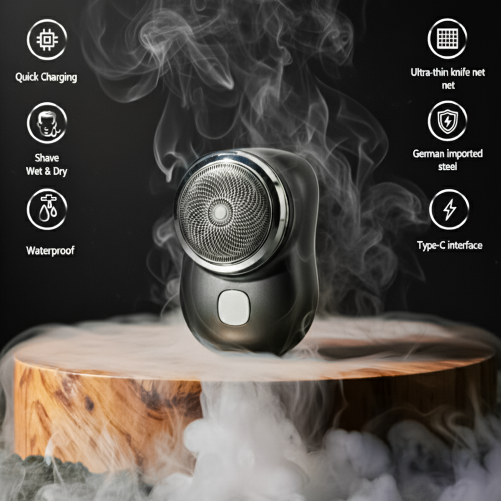 Includes 1 mini electric shaver (12×6×12 cm, 131 g) — durable steel build, color sent at random.
