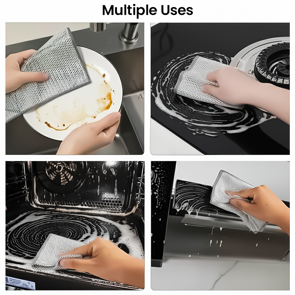 Effortlessly remove grease, grime, and stubborn stains with our durable wire dishwashing rags — perfect for scrubbing dishes and wiping countertops in your busy kitchen.
