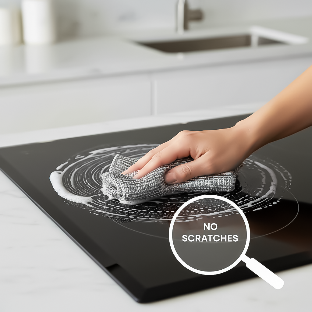 The precision-engineered micro-mesh structure activates effective grease removal while maintaining surface safety. Optimized for wet and dry use, it ensures balanced abrasion and long lasting performance.